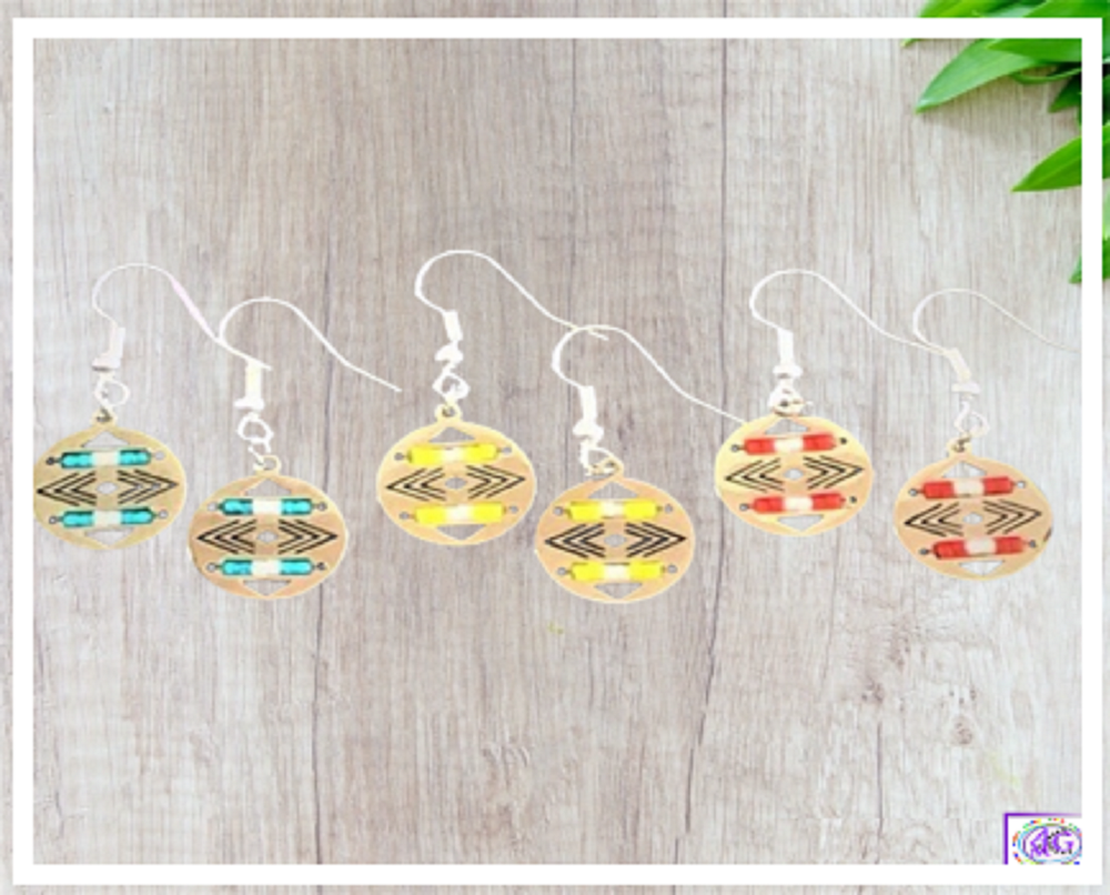 These centerline bead earrings are a stunning pair of jewelry that will add a touch of modern elegance and geometric charm to your look. These earrings are handmade with silver plated wires and 11/0 seed beads in various colors that create a striking contrast and a centerline design. The earrings are light in weight and comfortable to wear, and they measure about 1 inch in length. These earrings are perfect for any occasion, whether you want to dress up or down. They are also a wonderful gift idea for someone who loves simple and elegant jewelry.